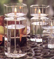 Patio Pillars bring romantic lighting to the table. Handworked to the hexagonal shape and substantial heft of classic jar candles, their guard protects the flame from the evening's breeze.