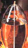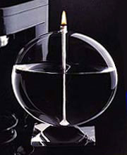 Celestial sphere pulled back to earth. Atop its firmly rooted base, seamless curve of glass casts intriguing shadows.